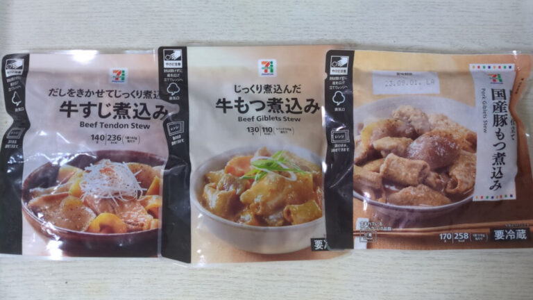 セブンイレブンのもつ煮や牛すじ煮込みを食べ比べてみたよ。